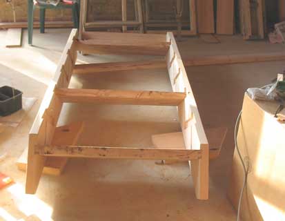The first, last and centre treads were glued and screwed into