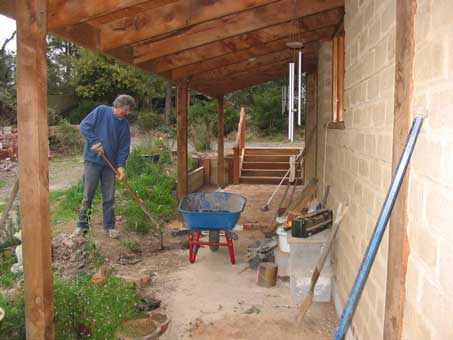 Next came the awful job of laying the brick paving.