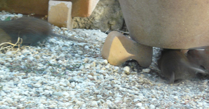 refuge flowerpot, doesn't seem to worry the bolder rats. although the nervousness of others indicated the presence of a larger population |