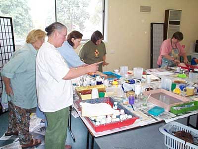 ![]() Karen demonstrating while Fiona works quietly away in the background, not wanting to stop while things are working well for her. |